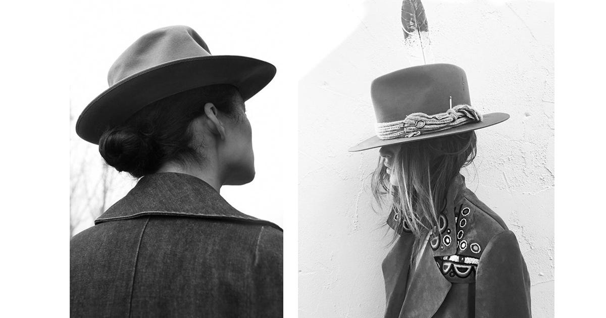 One of the labels I return to most often is Nick Fouquet. Born in New York and raised between France and Florida, Fouquet started his brand in a Venice Beach garage in 2013. He didn’t come from traditional millinery, but from patternmaking and design, which perhaps explains the instinctive quality of his work. His hats blend the rebellious spirit of the American West with a certain Parisian restraint. Made by hand from beaver felt, straw or vintage textiles, they are finished with small, almost secret details: a match slipped into the band, a slightly burned brim, edges left imperfect. They feel worn-in from the start—rooted in tradition, yet unmistakably contemporary.