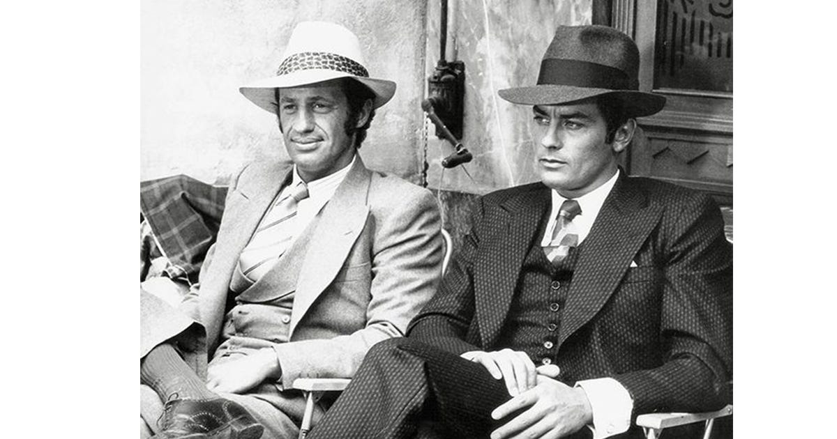 Alain Delon and Jean-Paul Belmondo walking through Marseille. Diane Keaton in a tailored suit. Tasya van Ree moving through the city. None of them are “wearing a hat” in the theatrical sense. They are simply wearing their hat.