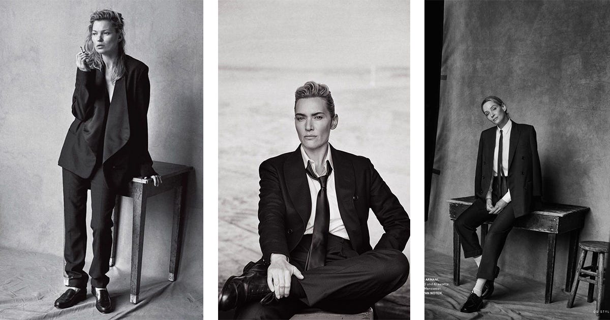 Few photographers have captured the essence of the suit quite like Peter Lindbergh. His black-and-white images of women—Kate Moss in an oversized blazer, Linda Evangelista in pinstripes, Uma Thurman exuding quiet power in classic tailoring—highlight the inherent drama of the suit. The structured silhouette against a raw background, the interplay of light and shadow, the way fabric moves with the body—it all tells a story. Calvin Klein and Armani, too, have long understood the enduring appeal of the suit, frequently showcasing it in their campaigns as a timeless symbol of strength and sensuality.